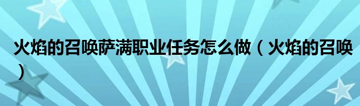 火焰的召唤萨满职业任务怎么做(火焰的召唤)