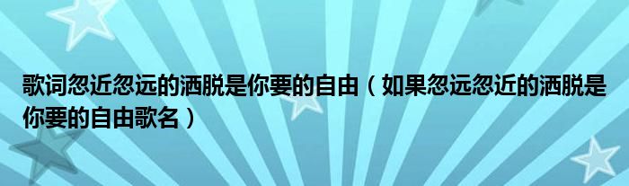 关于歌词忽近忽远的洒脱是你要的自由,如果忽远忽近的洒脱是你要的自由歌名这个很多人还不知道,今天菲菲来为大家解答以上的问题,现在让我们一起来看看吧!