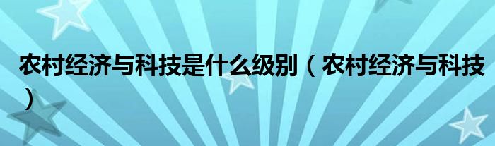 关于农村经济与科技是什么级别,农村经济与科技这个很多人还不知道,今天菲菲来为大家解答以上的问题,现在让我们一起来看看吧!