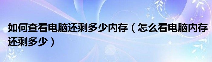 关于如何查看电脑还剩多少内存,怎么看电脑内存还剩多少这个很多人还不知道,今天菲菲来为大家解答以上的问题,现在让我们一起来看看吧!