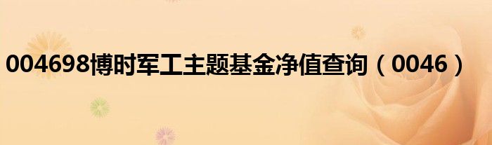 004698博时军工主题基金净值查询(0046)