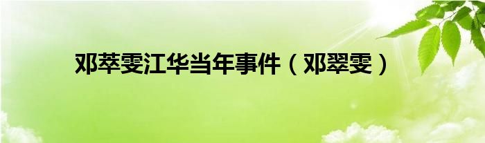 邓萃雯江华当年事件(邓翠雯)