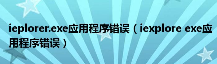 ieplorer.exe应用程序错误(iexploreexe应用程序错误)