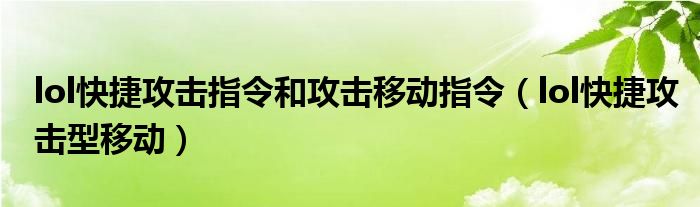 lol快捷攻击指令和攻击移动指令,lol快捷攻击型移动很多人还不知道,乐乐来为大家解答以上问题,现在让我们一起来看看吧!