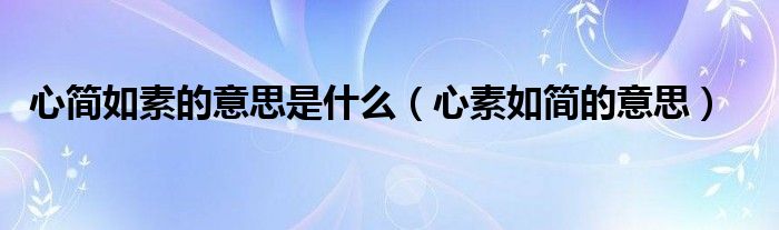 大家好,小晋来为大家解答以下问题,关于心简如素的意思是什么,心素如简的意思很多人还不知道,今天让我们一起来看看吧!