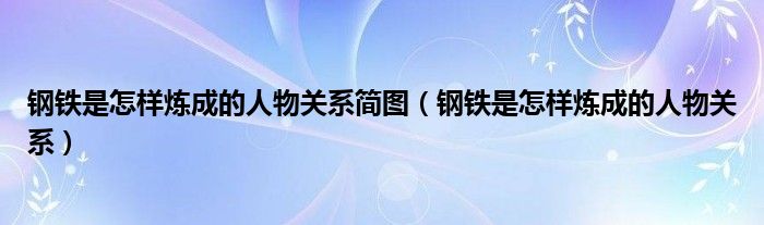 关于钢铁是怎样炼成的人物关系简图,钢铁是怎样炼成的人物关系这个很多人还不知道,今天菲菲来为大家解答以上的问题,现在让我们一起来看看吧!