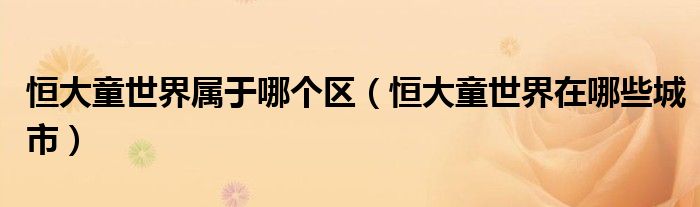 恒大童世界属于哪个区(恒大童世界在哪些城市)
