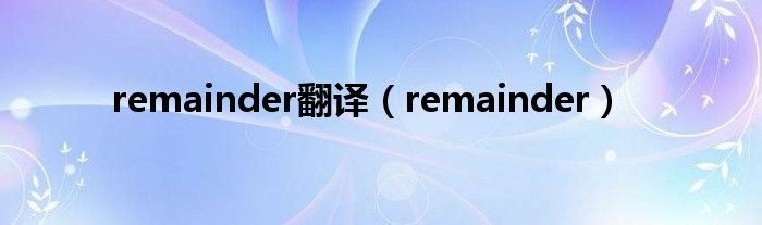 大家好,小晋来为大家解答以下问题,关于remainder翻译,remainder很多人还不知道,今天让我们一起来看看吧!