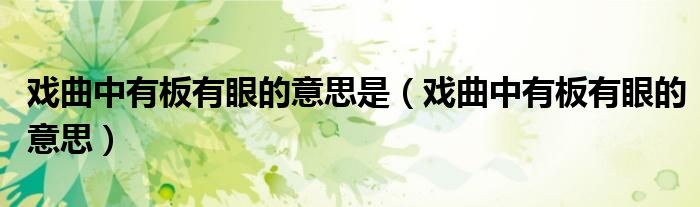 戏曲中有板有眼的意思是(戏曲中有板有眼的意思)