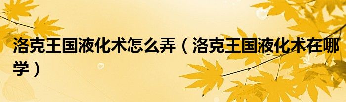 关于洛克王国液化术怎么弄,洛克王国液化术在哪学这个很多人还不知道,今天菲菲来为大家解答以上的问题,现在让我们一起来看看吧!