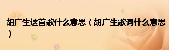大家好,小晋来为大家解答以下问题,关于胡广生这首歌什么意思,胡广生歌词什么意思很多人还不知道,今天让我们一起来看看吧!