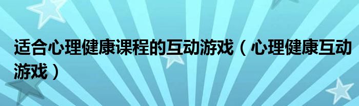 关于适合心理健康课程的互动游戏,心理健康互动游戏这个很多人还不知道,今天菲菲来为大家解答以上的问题,现在让我们一起来看看吧!