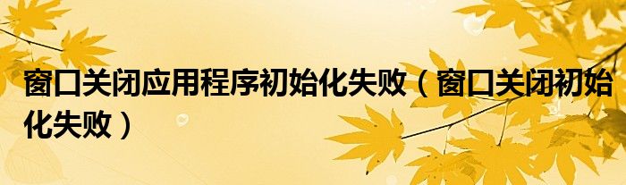 关于窗口关闭应用程序初始化失败,窗口关闭初始化失败这个很多人还不知道,今天菲菲来为大家解答以上的问题,现在让我们一起来看看吧!