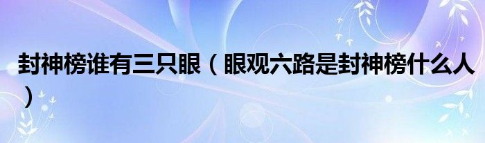 大家好,小晋来为大家解答以下问题,关于封神榜谁有三只眼,眼观六路是封神榜什么人很多人还不知道,今天让我们一起来看看吧!