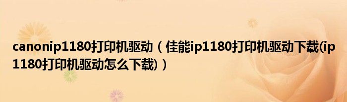 一.佳能ip1180打印机驱动下载 好么?:
