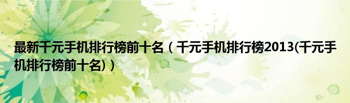 最新千元手机排行榜前十名(千元手机排行榜2013(千元手机排行榜前十名))
