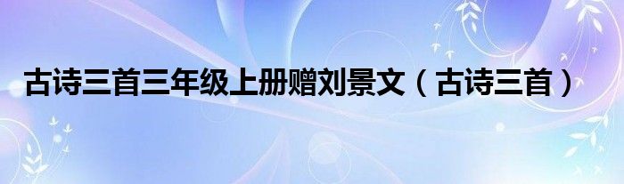 大家好,小晋来为大家解答以下问题,关于古诗三首三年级上册赠刘景文,古诗三首很多人还不知道,今天让我们一起来看看吧!