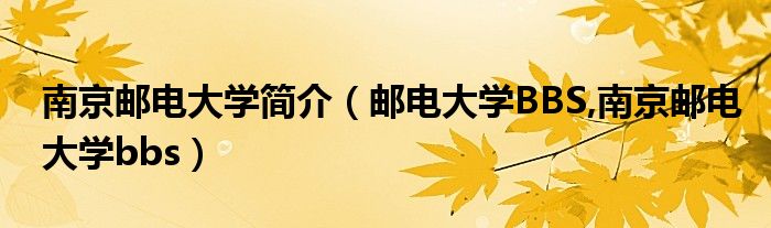 南京邮电大学简介(邮电大学BBS,南京邮电大学bbs)