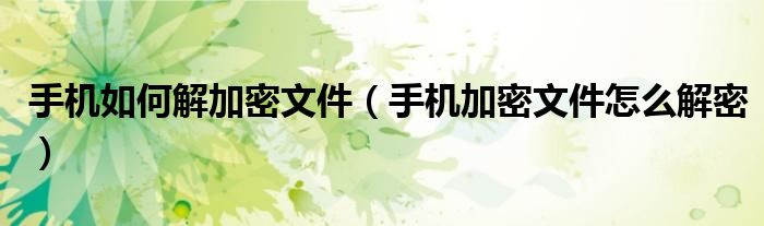 手机如何解加密文件(手机加密文件怎么解密)