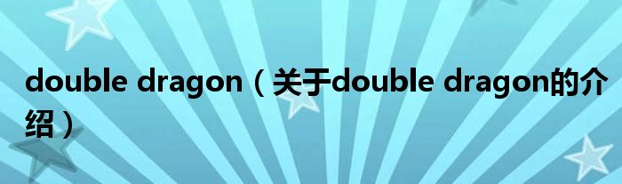 大家好,今天小乐来为大家解答以上的问题。double dragon,关于double dragon的介绍很多人还不知道,现在让我们一起来看看吧!