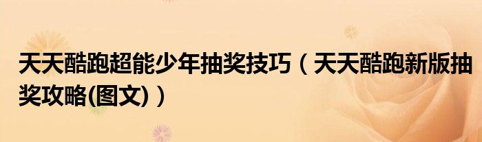 大家好,今天小悦来为大家解答以上问题。天天酷跑超能少年抽奖技巧,天天酷跑新版抽奖攻略(图文)很多人还不知道,现在让我们一起来看看吧!