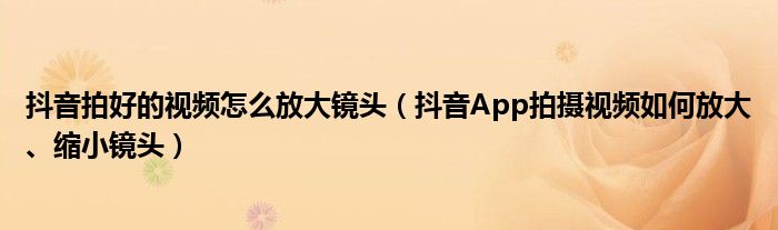 大家好,今天小悦来为大家解答以上问题。抖音拍好的视频怎么放大镜头,抖音App拍摄视频如何放大、缩小镜头很多人还不知道,现在让我们一起来看看吧!