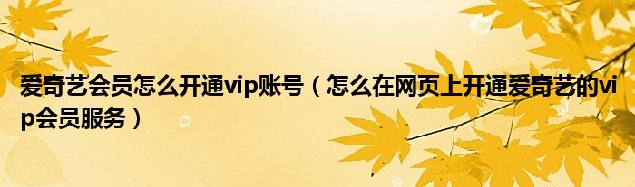 爱奇艺会员怎么开通vip账号(怎么在网页上开通爱奇艺的vip会员服务)