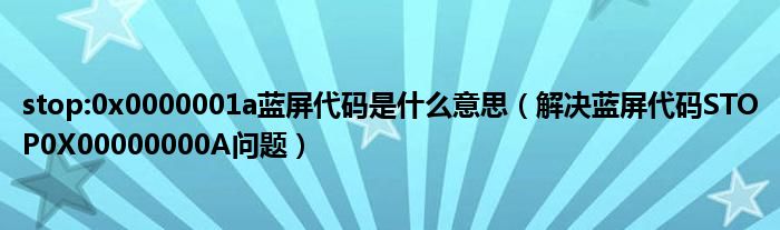 stop:0x0000001a蓝屏代码是什么意思(解决蓝屏代码STOP0X00000000A问题)
