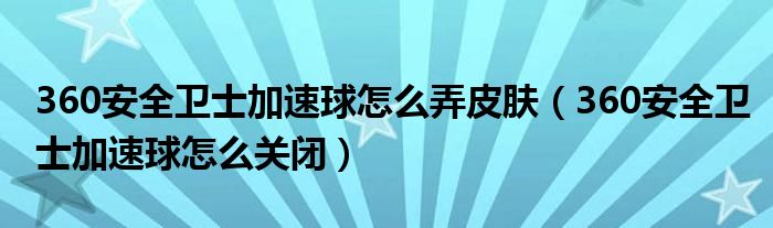 大家好,今天小悦来为大家解答以上问题。360安全卫士加速球怎么弄皮肤,360安全卫士加速球怎么关闭很多人还不知道,现在让我们一起来看看吧!