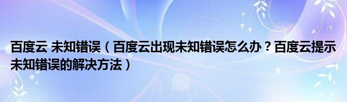 那么百度云出现未知错误该如何解决呢?解决方法如下:
