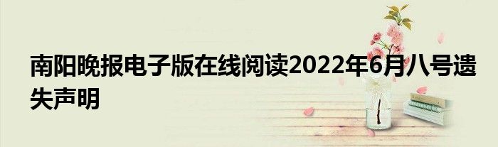 南阳晚报电子版在线阅读2022年6月八号遗失声明