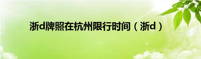 关于浙d牌照在杭州限行时间,浙d这个很多人还不知道,今天菲菲来为大家解答以上的问题,现在让我们一起来看看吧!