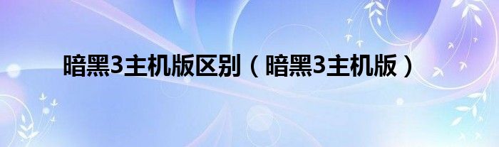暗黑3主机版区别(暗黑3主机版)
