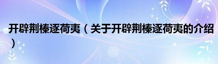 开辟荆榛逐荷夷(关于开辟荆榛逐荷夷的介绍)