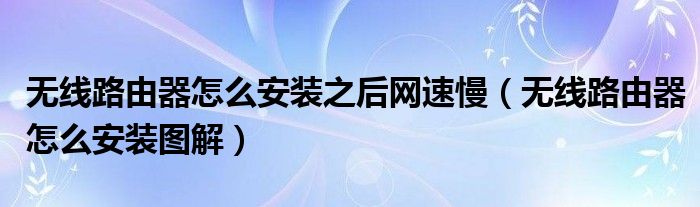 大家好,雨雨来为大家解答以上问题,无线路由器怎么安装之后网速慢,无线路由器怎么安装图解很多人还不知道,现在让我们一起来看看吧!