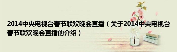 2014中央电视台春节联欢晚会直播(关于2014中央电视台春节联欢晚会直播的介绍)