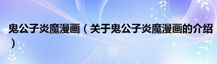 大家好,今天小乐来为大家解答以上的问题。鬼公子炎魔漫画,关于鬼公子炎魔漫画的介绍很多人还不知道,现在让我们一起来看看吧!