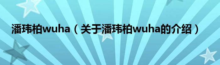 大家好,今天小乐来为大家解答以上的问题。潘玮柏wuha,关于潘玮柏wuha的介绍很多人还不知道,现在让我们一起来看看吧!