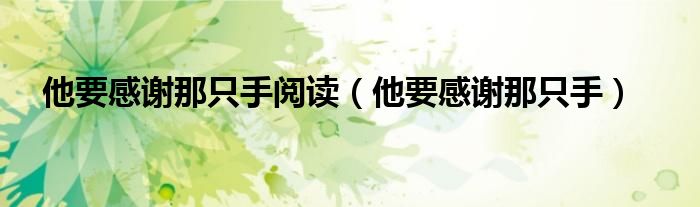 关于他要感谢那只手阅读,他要感谢那只手这个很多人还不知道,今天菲菲来为大家解答以上的问题,现在让我们一起来看看吧!
