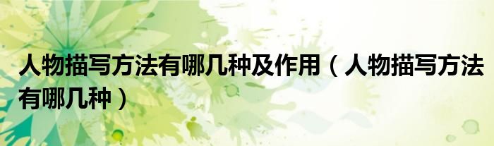 关于人物描写方法有哪几种及作用,人物描写方法有哪几种这个很多人还不知道,今天菲菲来为大家解答以上的问题,现在让我们一起来看看吧!