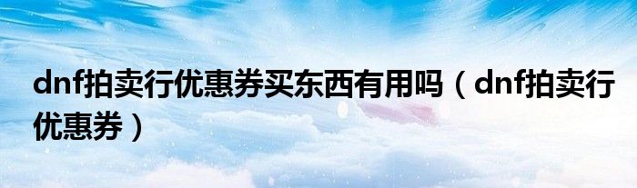 关于dnf拍卖行优惠券买东西有用吗,dnf拍卖行优惠券这个很多人还不知道,今天菲菲来为大家解答以上的问题,现在让我们一起来看看吧!