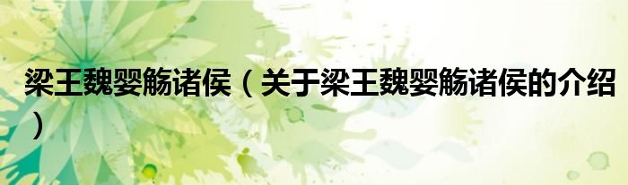 梁王魏婴觞诸侯(关于梁王魏婴觞诸侯的介绍)