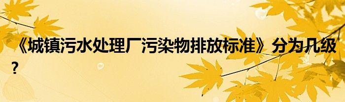 关于《城镇污水处理厂污染物排放标准》分为几级?这个很多人还不知道,今天菲菲来为大家解答以上的问题,现在让我们一起来看看吧!