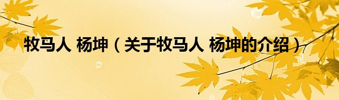 牧马人杨坤(关于牧马人杨坤的介绍)