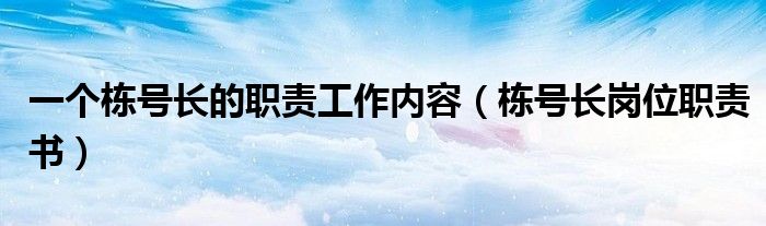 关于一个栋号长的职责工作内容,栋号长岗位职责书这个很多人还不知道,今天菲菲来为大家解答以上的问题,现在让我们一起来看看吧!