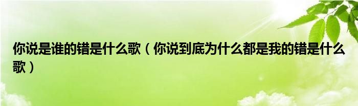 关于你说是谁的错是什么歌,你说到底为什么都是我的错是什么歌这个很多人还不知道,今天菲菲来为大家解答以上的问题,现在让我们一起来看看吧!