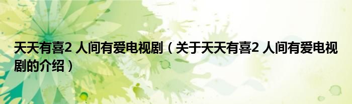 天天有喜2人间有爱电视剧(关于天天有喜2人间有爱电视剧的介绍)