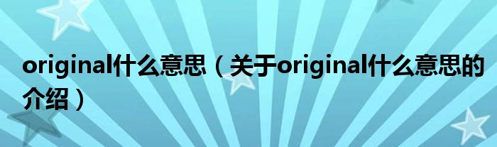 大家好,小都来为大家解答以上的问题。original什么意思,关于original什么意思的介绍很多人还不知道,现在让我们一起来看看吧!
