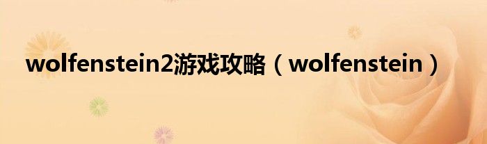 wolfenstein2游戏攻略(wolfenstein)
