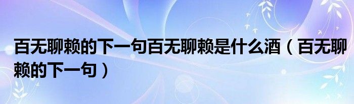 百无聊赖的下一句百无聊赖是什么酒(百无聊赖的下一句)